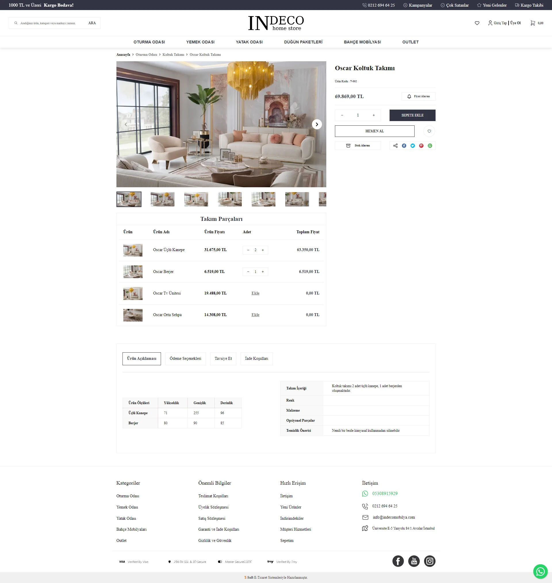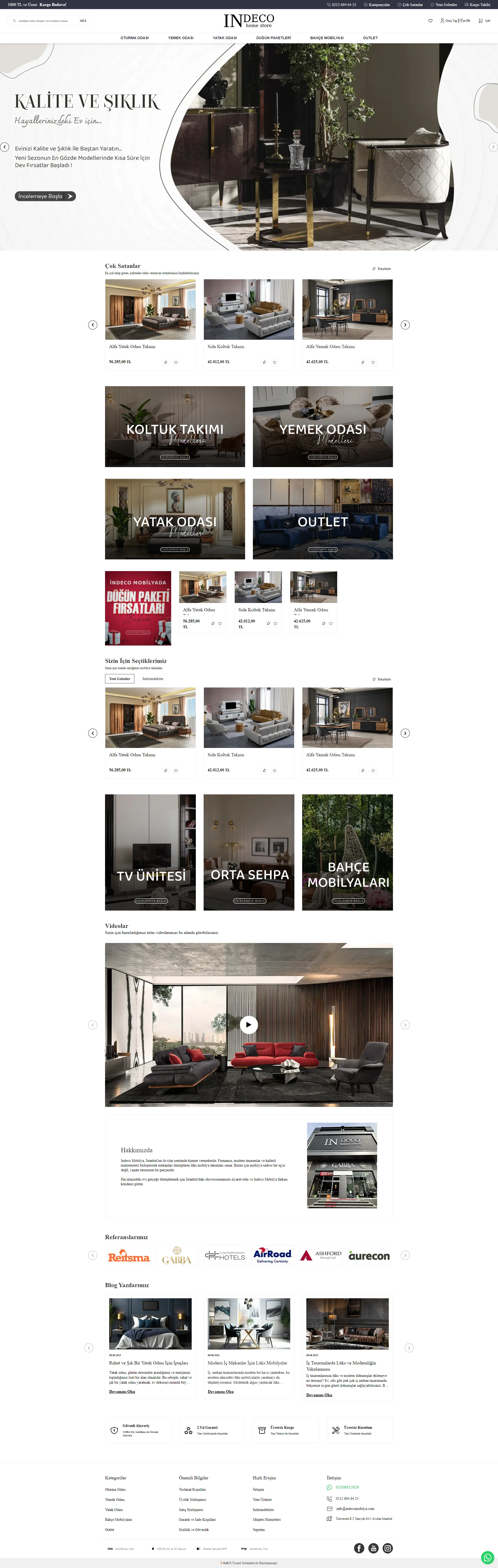 Türkiye'nin modern mobilya markalarından biri olan Indeco Mobilya için T-Soft altyapısında estetik ve fonksiyonel bir web sitesi tasarlayıp düzenledik. Meta ve Google dijital reklamlarını etkili bir şekilde yöneterek markanın dijital varlığını güçlendirdik.