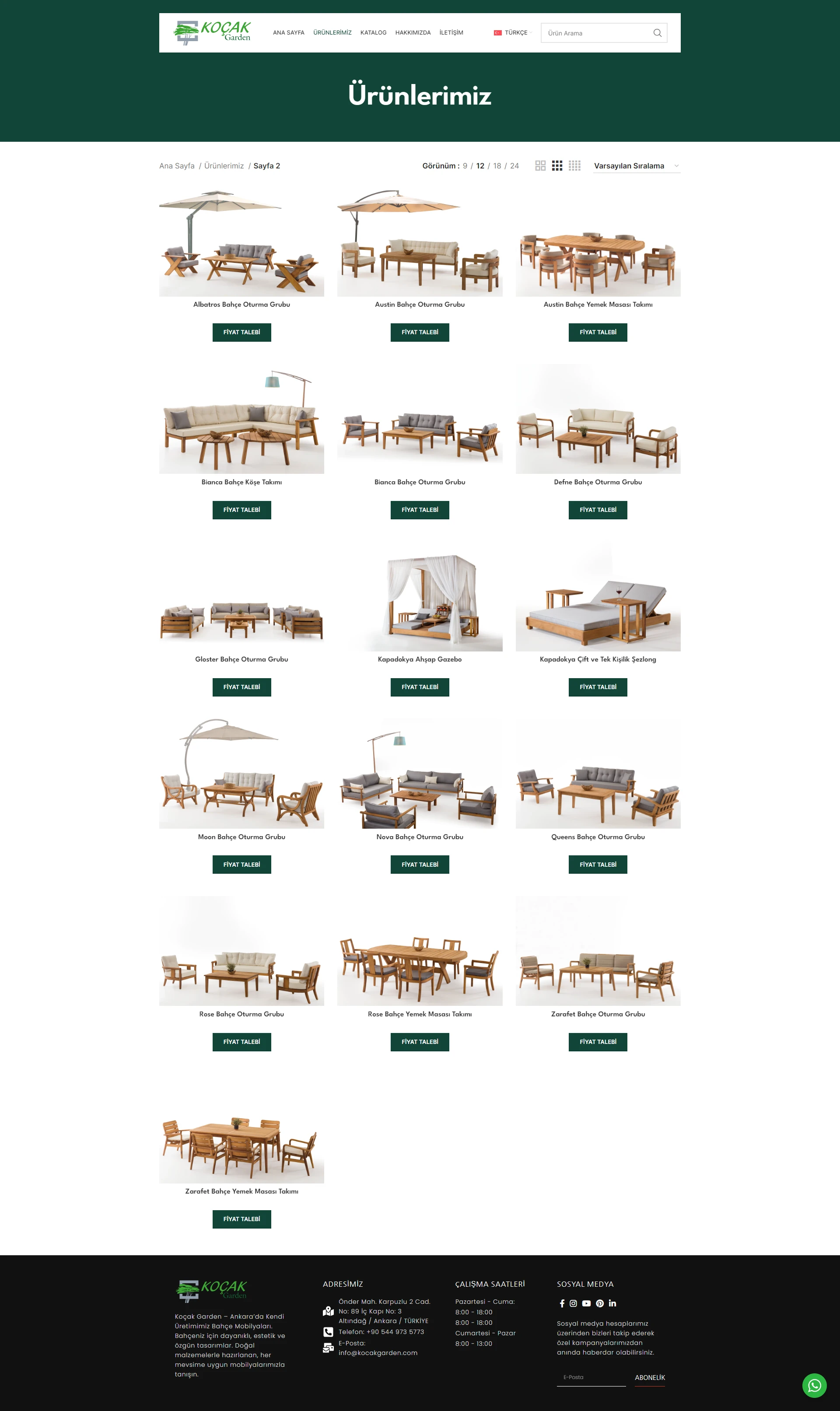 Koçak Garden için bahçe mobilyaları alanındaki uzmanlığına uygun şekilde estetik ve kullanıcı dostu bir web sitesi tasarladık.