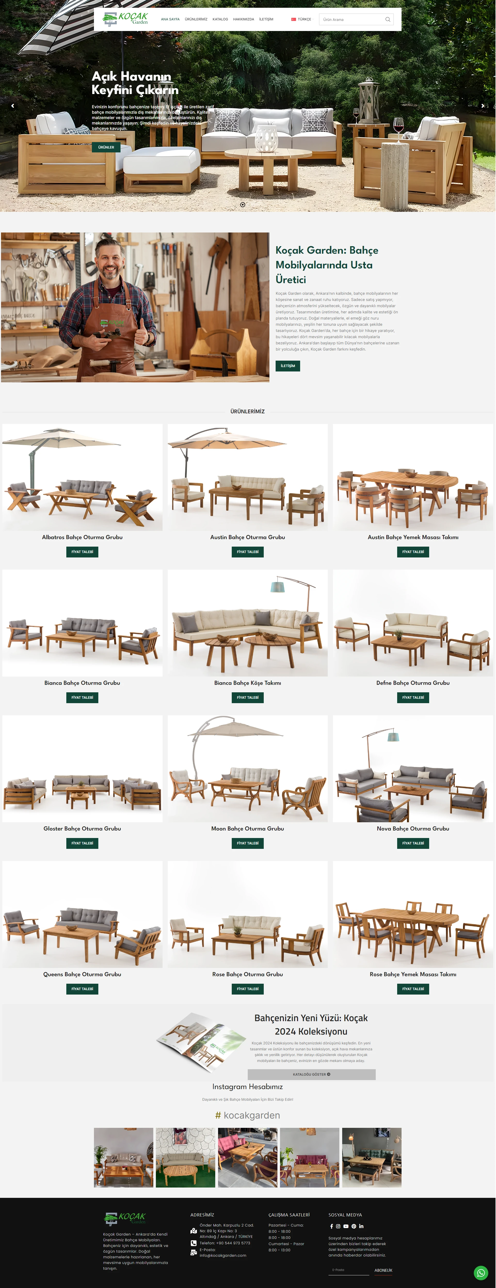 Bahçe mobilyaları alanında uzmanlaşmış Koçak Garden, ürünlerini ve marka kimliğini en iyi şekilde yansıtacak, kullanıcıların kolayca gezinebileceği modern ve estetik bir web sitesine ihtiyaç duyuyordu.