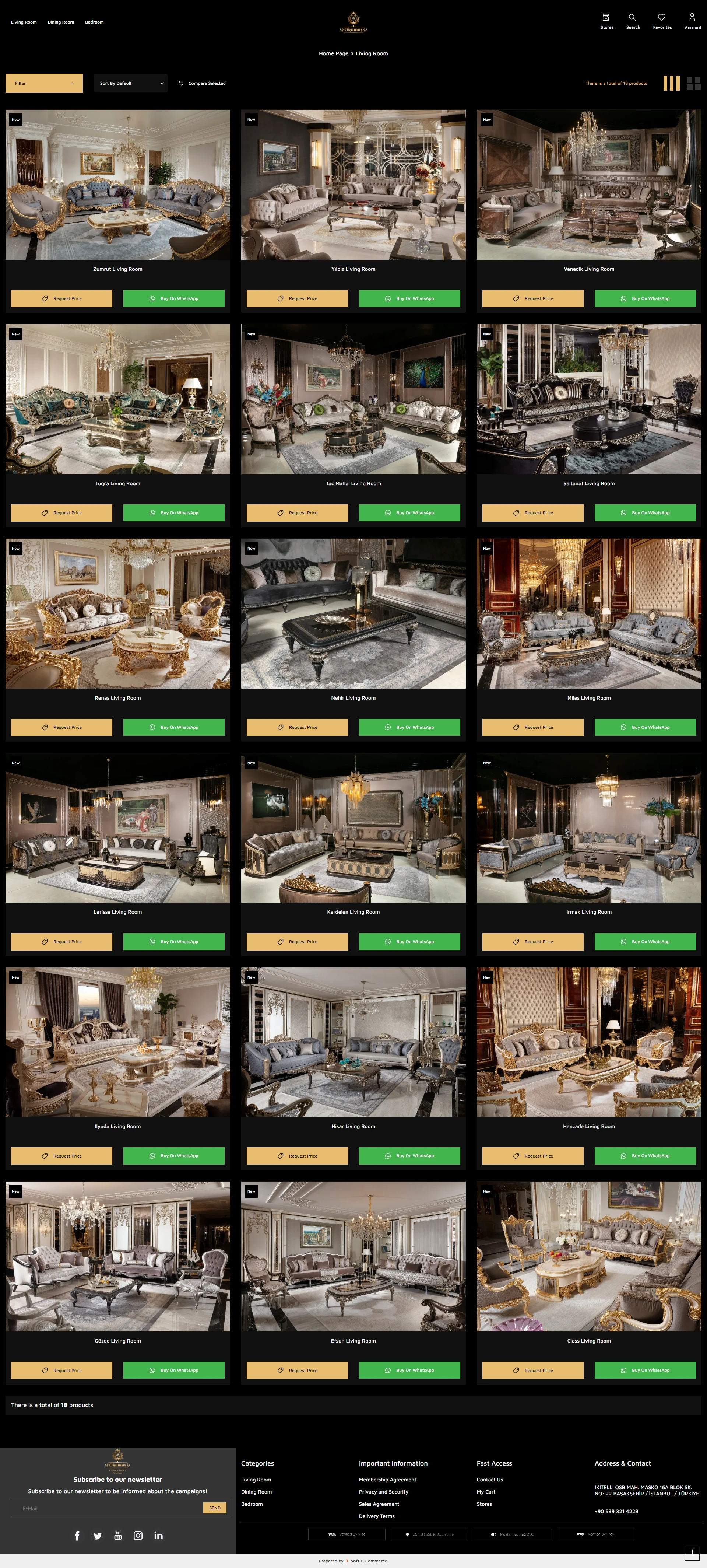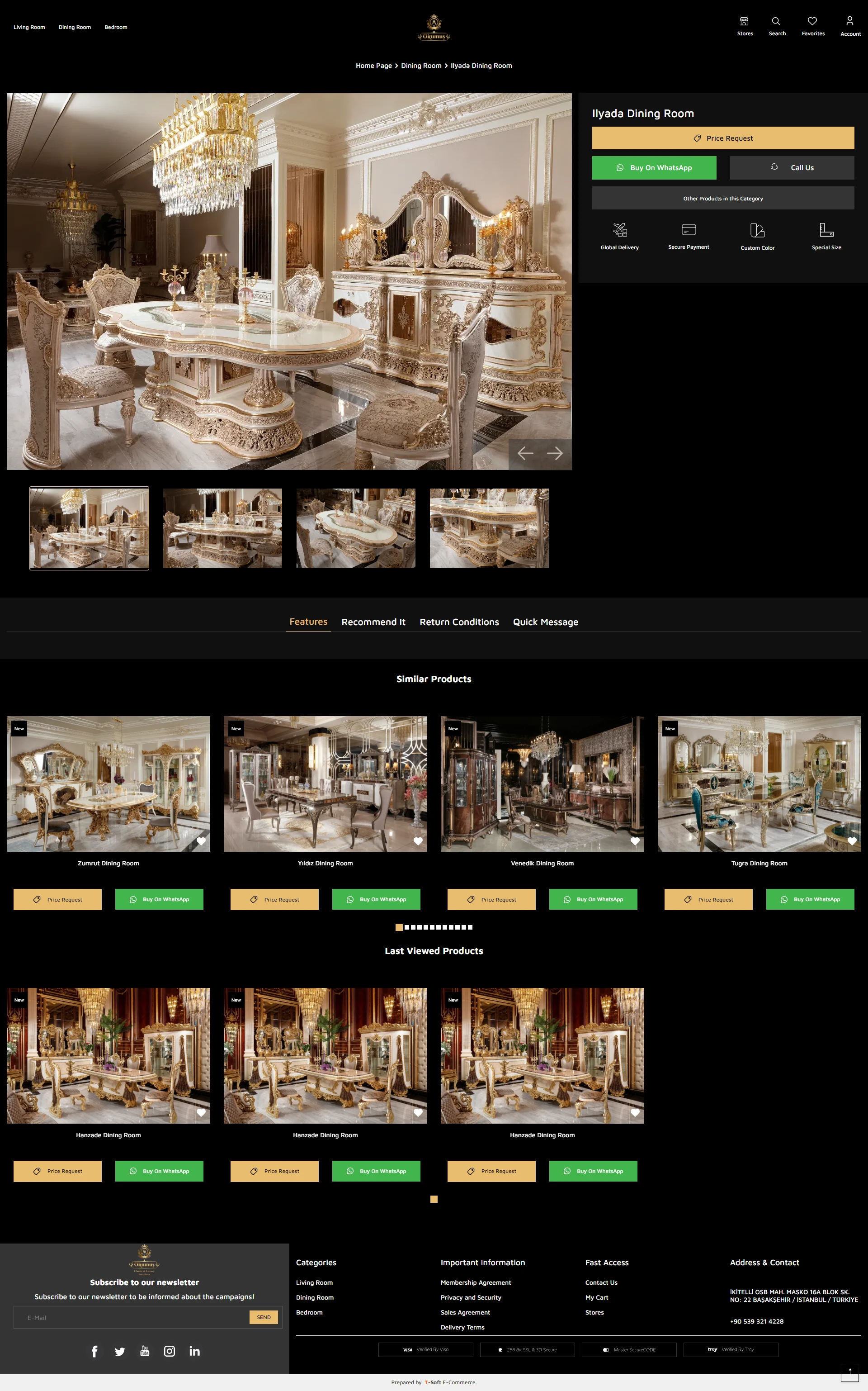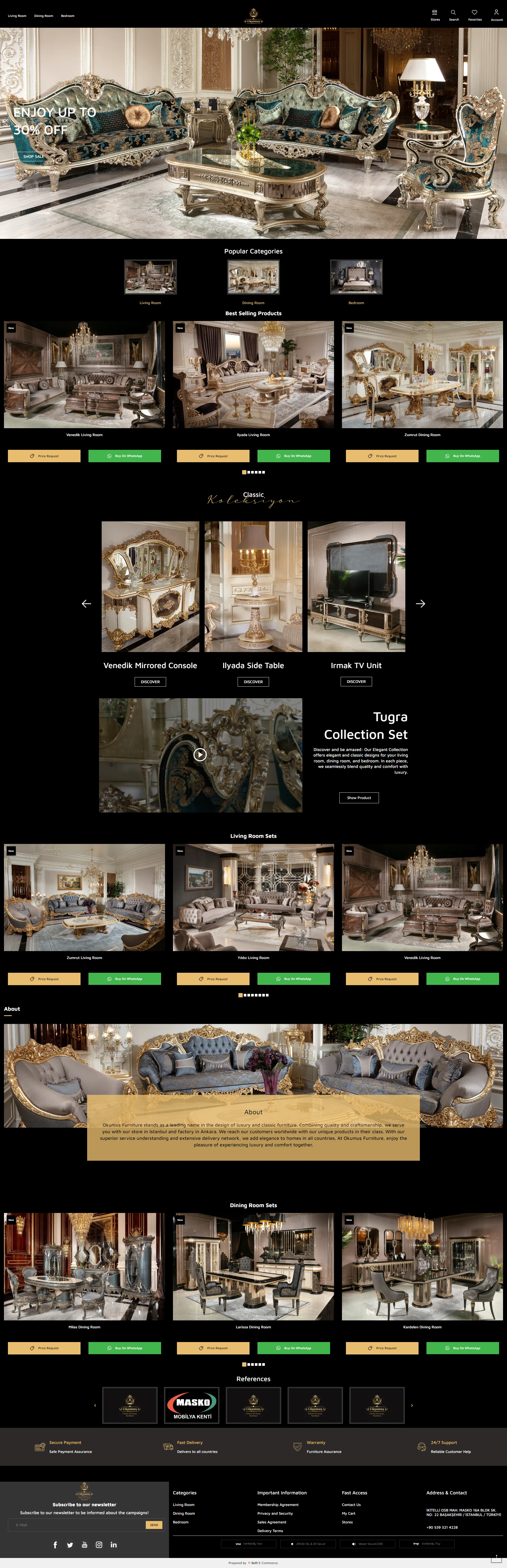 Türkiye'nin klasik lüks mobilya markalarından biri olan Okumuş Mobilya için T-Soft altyapısında zarif ve fonksiyonel bir web sitesi oluşturduk ve düzenledik. Meta ve Google dijital reklamlarını etkili bir şekilde yöneterek markanın klasik zarafetini dijital dünyada da vurguladık.
