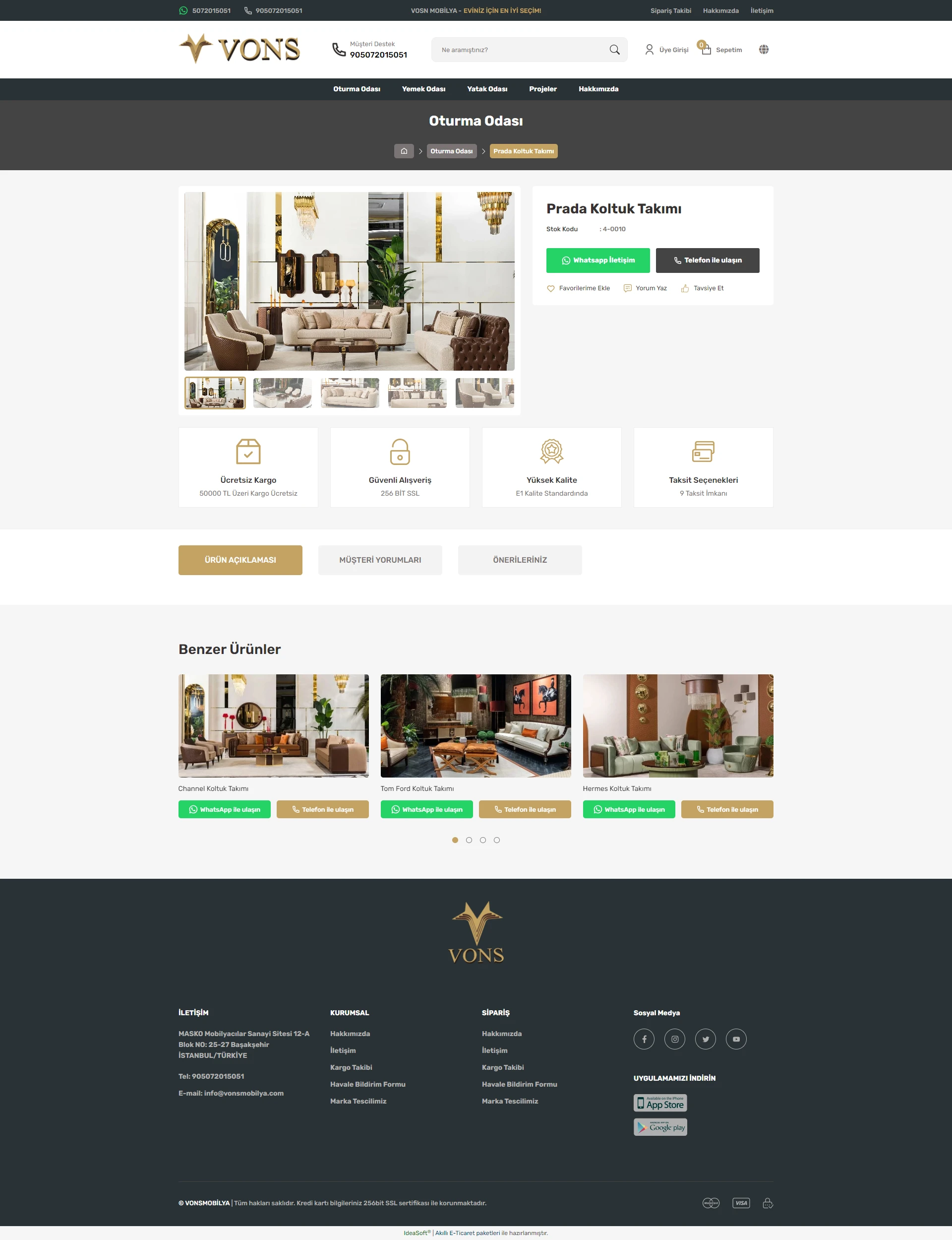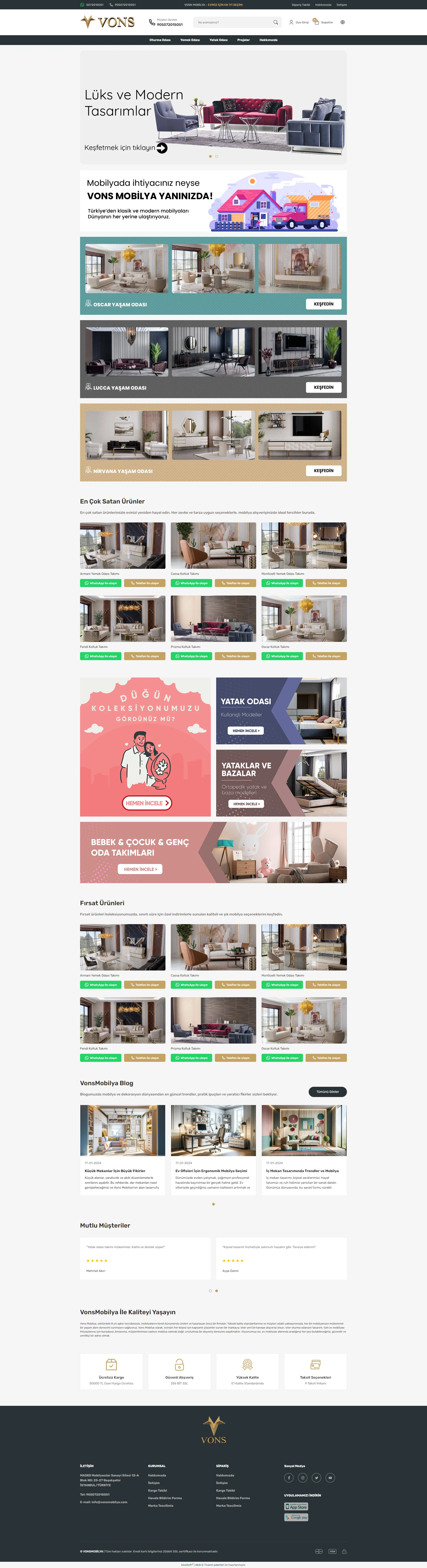 Mobilya üretimi, satışı ve proje hizmetleri sunan Vons Mobilya için IdeaSoft altyapısında bir web sitesi oluşturduk ve dijital reklamlarını yönettik.